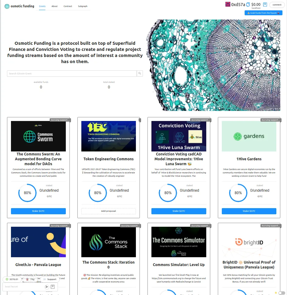 Osmotic Funding is a protocol built on top of Superfluid Finance and Conviction Voting to create and regulate project funding streams based on the amount of interest a community gives them. Community preference is revealed continuously, since tokenholders are able to update their preferences (change their stake) at any moment.